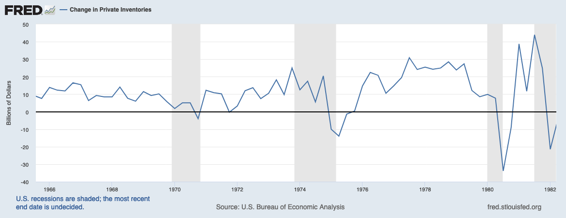 Les inventaires continuent de s'accumuler jusqu'en 1975, au rythme d'environ 1% du PIB.