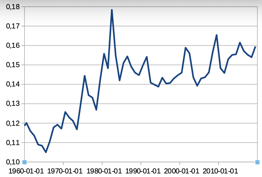 Mais on peut noter que grosso modo, l'évolution de c/v dans les années 1970 et 1980 est en phase avec le chômage.