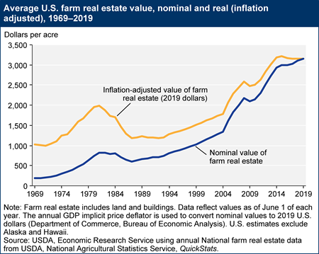 source : https://www.ers.usda.gov/topics/farm-economy/land-use-land-value-tenure/farmland-value/