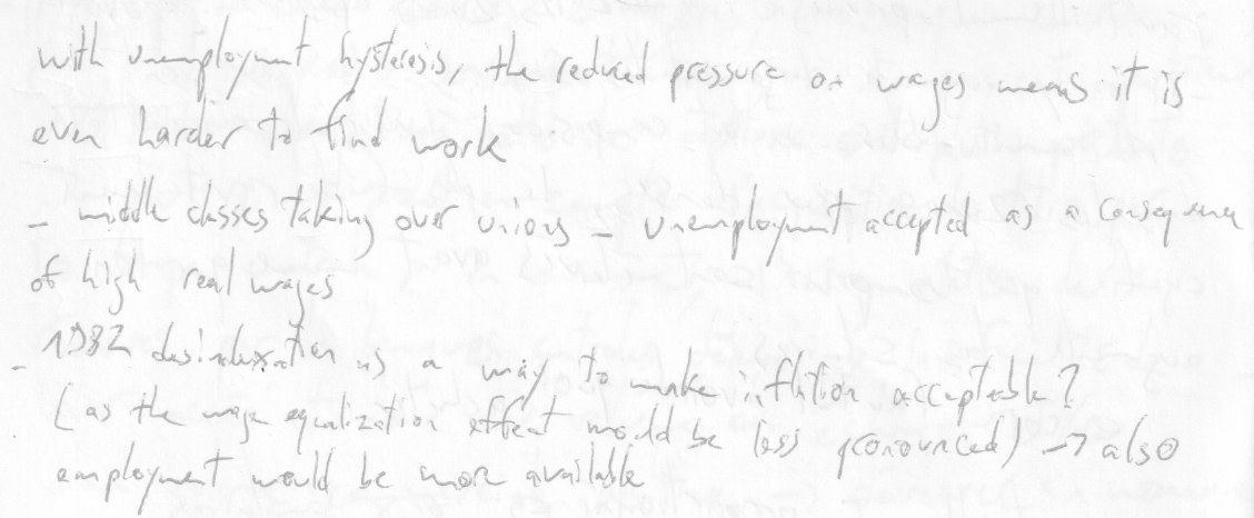 Si l’indexation sur les salaires n’était pas formellement en place dans tous les pays de l’OCDE, le nivellement des salaires était probablement fatal si l’on voulait éviter que les classes populaires ne perdent toute raison de ne pas renverser la structure à mesure que le chômage progressait. Pour que l’inflation préserve le taux de profit (lequel constitue une incitation pour les classes supérieures), les classes moyennes devaient payer – et se désengager du rapport de force en devenant propriétaires. Les grèves déclinent dès 1975. Plutôt un chômage de masse que d’être à égalité avec son maçon.