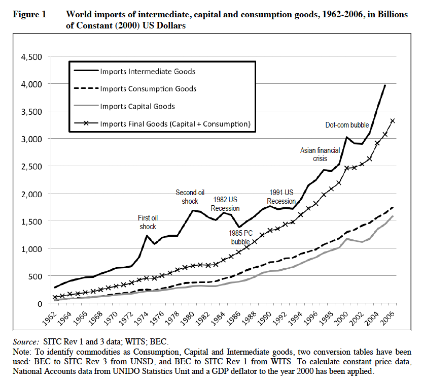 Le déploiement des firmes des pays développés à travers le monde dépend d’une monnaie forte, qui est aussi utile aux importations d’énergie. Pour les Américains, le problème est simplifié par le paiement de leurs importations en dollars, dont le cours élevé accroît par ailleurs la sévérité des politiques d’austérité* des autres pays développés. Ceux-ci cherchent en effet à maintenir leur balance commerciale pour préserver le cours de leur monnaie et donc à favoriser leurs exportations par une diminution de la consommation domestique. De plus, maintenant que les monnaies ne sont plus rattachées au dollar, elles sont devenues plus sensibles aux fluctuations du commerce extérieur[7], et pour constituer les réserves de change – utiles toujours à la défense des monnaies nationales, une balance commerciale positive est d’autant plus nécessaire : il faut donc éviter la hausse du prix de ses produits d’exportation… ce qui fait de l’inflation un adversaire majeur [et pourtant on s’accommode des coupes dans le budget recherche et développement : comme quoi « l’inflation » est un terme neutre qui masque les mécanismes à l’œuvre]. Des politiques de soutien à la demande par l’expansion monétaire auraient pour effet d’augmenter les importations et de diminuer les exportations (consommant davantage de produits autrement destinés à être exportés). En mettant un coup de frein au commerce international (surtout des biens intermédiaires ), les évènements des années 1970 et du début des années 1980 (chocs pétroliers, récession américaine) ont limité les gains de productivité à travers le monde et ainsi soutenu le dollar – encore s’agit-il d’encaisser le choc social et donc politique que ce ralentissement économique implique.
